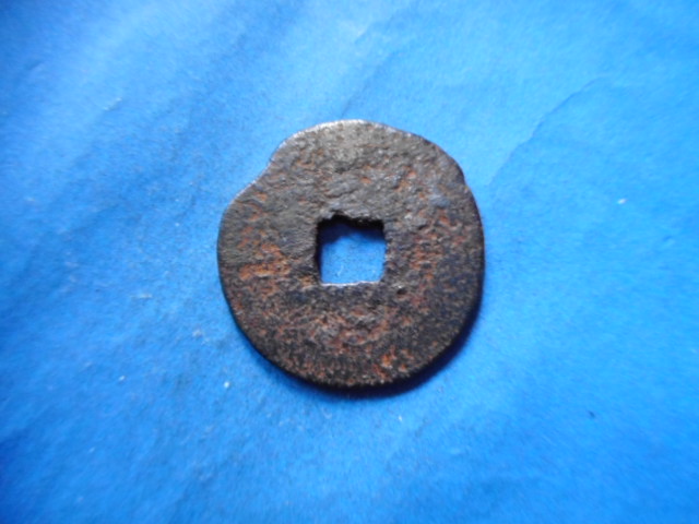 草2740古銭 新寛永通宝 俗称紀伊一之瀬銭類 鋳込丸一 小貝宝 鉄銭 NO・・250